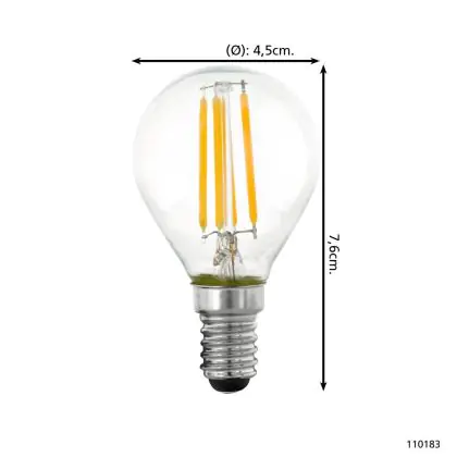 Eglo LED Ball E14 Filament Clear 4.5W 470lm - 827 Extra Warm White | Dimmable - Replaces 40W