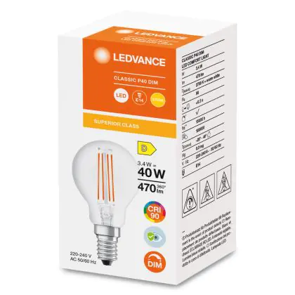 | Manufacturer Name | LED CLASSIC P DIM CRI 90 S 3.4W 927 FIL CL E14 | |