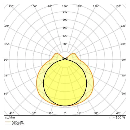 The Luminous Efficacy (lm/W) indicates how efficiently a light source uses energy. We divide the number of lumens by the wattage. The higher the number, the more efficient a product is in terms of energy consumption. LED lighting has a considerably higher lumen/Watt ratio than conventional lighting.