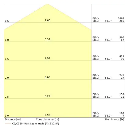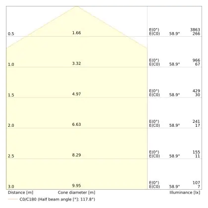 ![]() The colour code is a combination of colour rendering (CRI) and light colour (Kelvin). The first number indicates the colour rendering (1 = very poor colour rendering, 9 = maximum colour fastness). The second and third number contains the light colour. Example: the colour code 830 consists of good colour rendering (8) and warm white light (3000K). |