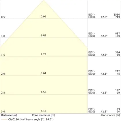 ![]() The colour code is a combination of colour rendering (CRI) and light colour (Kelvin). The first number indicates the colour rendering (1 = very poor colour rendering, 9 = maximum colour fastness). The second and third number contains the light colour. Example: the colour code 830 consists of good colour rendering (8) and warm white light (3000K). |