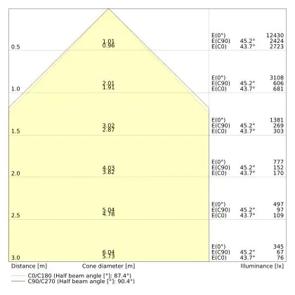 ![]() The colour code is a combination of colour rendering (CRI) and light colour (Kelvin). The first number indicates the colour rendering (1 = very poor colour rendering, 9 = maximum colour fastness). The second and third number contains the light colour. Example: the colour code 830 consists of good colour rendering (8) and warm white light (3000K). |