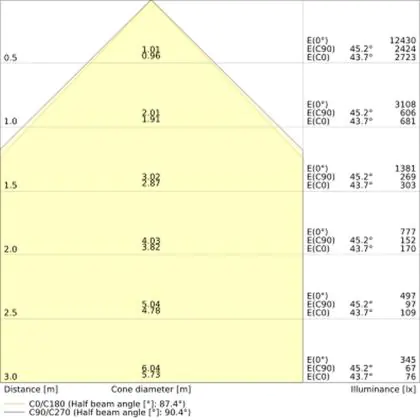 ![]() The colour code is a combination of colour rendering (CRI) and light colour (Kelvin). The first number indicates the colour rendering (1 = very poor colour rendering, 9 = maximum colour fastness). The second and third number contains the light colour. Example: the colour code 830 consists of good colour rendering (8) and warm white light (3000K). |