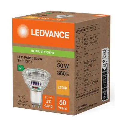 Ledvance LED PAR16 GU10 Reflector 2W 360lm 36D - 827 Extra Warm White | Replaces 50W