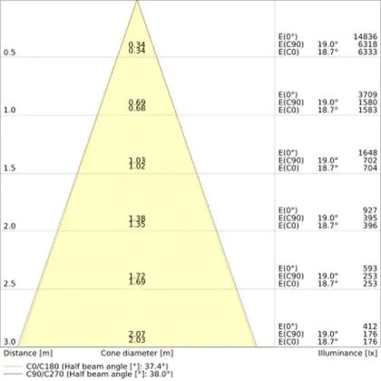A beam angle indicates the angle of the light beam coming from a light source. The smaller the radiation angle in degrees (D), the narrower the beam angle.