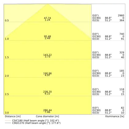 ![]() The colour code is a combination of colour rendering (CRI) and light colour (Kelvin). The first number indicates the colour rendering (1 = very poor colour rendering, 9 = maximum colour fastness). The second and third number contains the light colour. Example: the colour code 830 consists of good colour rendering (8) and warm white light (3000K). |