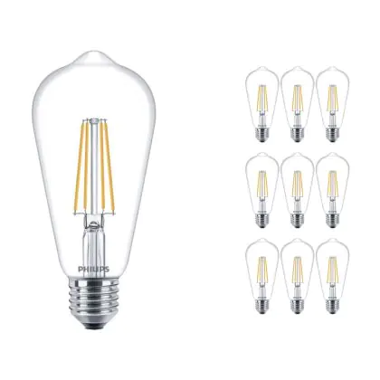 Multipack 10x Philips Corepro LED Bulb E27 Edison Filament Clear 7W 806lm - 827 Extra Warm White | Replaces 60W