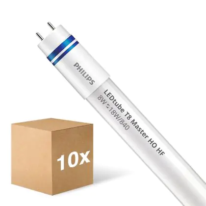 Multipack 10x Philips LED Tube T8 MASTER (HF) High Output 8W 1050lm - 840 Cool White | 60cm - Replaces 18W