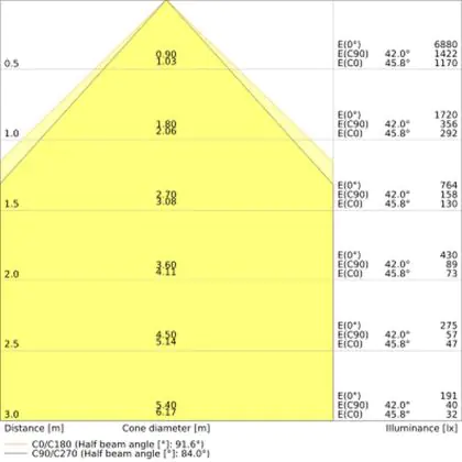 ![]() The colour code is a combination of colour rendering (CRI) and light colour (Kelvin). The first number indicates the colour rendering (1 = very poor colour rendering, 9 = maximum colour fastness). The second and third number contains the light colour. Example: the colour code 830 consists of good colour rendering (8) and warm white light (3000K). |