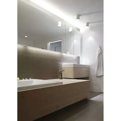 A fixture with a tiltable design makes it possible to direct the lighting specifically at an object or surface. This can play a particularly important role in shops (putting a new collection in the spotlight) or galleries (accentuating works of art). It can also influence the purchasing behaviour or interpretation of visitors.