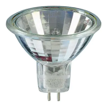 Philips Brilliantline Dichroic are halogen lamps with reflectors. These lamps are composed of a neon filled halogen burner, and of an axial filament in a glass reflector.