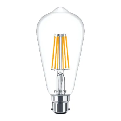 Philips Classic LED Bulb B22 Edison Filament Clear 8W 806lm - 822-827 Dim To Warm | Dimmable - Replaces 60W