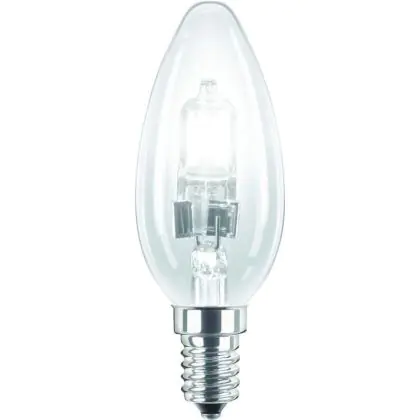 Philips EcoClassic Candle B35 are candles shaped halogen lamps replacing perfectly your old incandescent lamps. These lamps allow you to maintain a high quality light while saving energy (compared to your old incandescent lamps). The lamps are equipped with a E14 base, they are very easy to install. They have a B35 type shape.