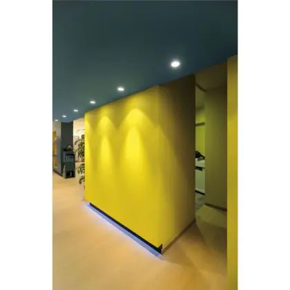 A fixture with a tiltable design makes it possible to direct the lighting specifically at an object or surface. This can play a particularly important role in shops (putting a new collection in the spotlight) or galleries (accentuating works of art). It can also influence the purchasing behaviour or interpretation of visitors.