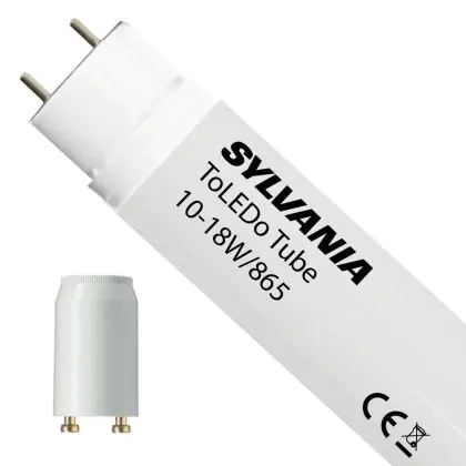 The Sylvania ToLEDo EM T8 V3 10W 865 60cm | Daylight - incl. LED Starter - Replaces 18W is the perfect alternative to a standard 18W fluorescent tube in lighting fixtures with Conventional (EM) ballast. With this LED tube you are guaranteed a long life and 5 years Any-Lamp warranty. When you switch to LED tubes, it is important that you check the length and wattage of your current fluorescent lamp. This 24W LED TL is the replacement for a conventional 18W fluorescent tube with a length of 600mm. This TL saves up to about 70% energy costs compared to a standard fluorescent tube.